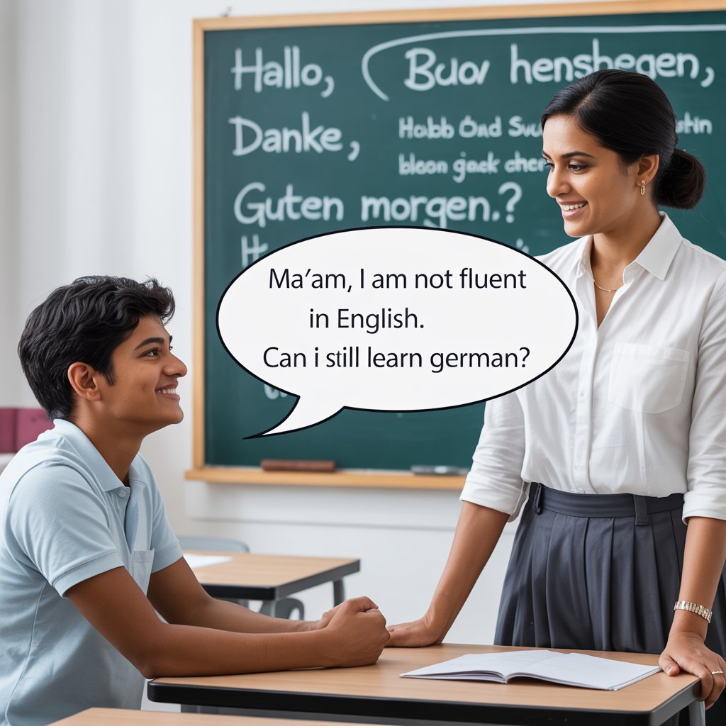 First, let us clear a big myth. English fluency is NOT mandatory to learn German. The German language has its own sounds, grammar, and structure. You are not “translating” English into German. You are learning German step-by-step, just like you once learned your mother tongue.